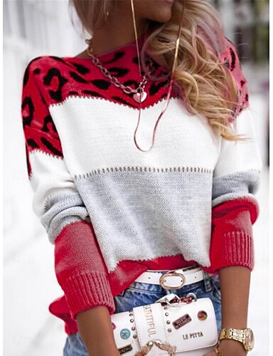 Dámské Svetr Pulovrový svetr Na běžné nošení Měkké Leopard Rýhovaný Tričkový Pletený Tisk Dlouhý rukáv Běžné topy Plést Venkovní Denní Víkend Žlutá Světlá růžová Podzim Zima