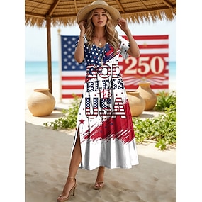 Den nezávislosti Americký výroční Patriotské dámské Maxi šaty Tričko šaty Tílko šaty Letní šaty Shift šaty Dovolená Ležérní Svátkové Běžné fit Grafika Americká vlajka Krátký rukáv V výstřih