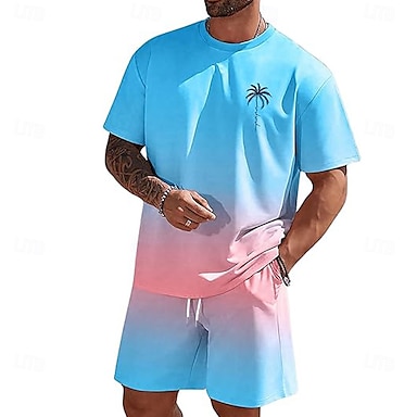 Pánské Tónované Palma 2ks Sady odpališť Letní vrcholy Krátký rukáv Krátké kalhoty Tričkový Plážová dovolená Sport Denní Jdeme ven 3D tisk Léto Bílá Modrá Zelená