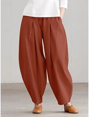 Dámské Letní kalhoty 100% Bawełna Volné kalhoty Harémové kalhoty Pohodlné Po kotníky Přírodní Pevná barva Kapsy Elastický pas Ležérní Černá Bílá Armádní zelená Tmavě námořnická Léto Jaro Podzim