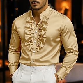 Pánské Košile Hedvábí jako Saténová košile Košile pro volný čas Bez vzoru Formální Svatební Černá Fialová Námořnická modř Zlatá Dlouhý rukáv Nabíraný krk Jaro & podzim Celý rok Oblečení Nabírané šaty