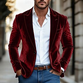 Muži Zimní kabát Vánoční sako Sametové blejzry Formální Denní Klasické Zima Podzim zima Samet Pevná barva Jednořadové sako s jedním knoflíkem Blejzr Bordó Královská modř Tmavě zelená