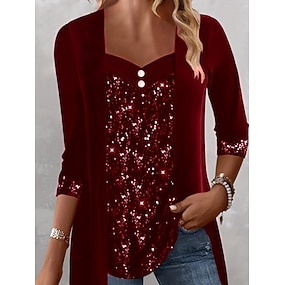 Vánoční ženská halenka jednobarevná elegantní stylová základní dlouhý rukáv čtvercový výstřih pravidelné topy každodenní nošení flitry patchwork černá víno fialová zelená jaro podzim zima
