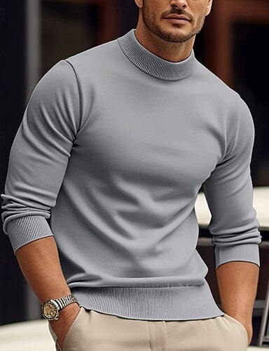 Pánské Pulovrový svetr Pletený svetr Rýhovaný Plést Pletený Bez vzoru Mock Neck Základní Zahřívací Denní nošení Dovolená Oblečení Podzim zima Černá Bílá S M L