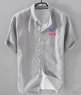 Pánské plátěná košile Košile s páskovým límečkem Letní košile Oblečení na pláž Bez vzoru Dovolená Curise Bílá Vodní modrá Khaki Šedá Krátký rukáv Stojáček Jaro léto Oblečení Základní