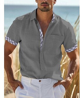 Pánské Košile plátěná košile Letní košile Oblečení na pláž Košile na knoflíky Bez vzoru Dovolená Curise Bílá Vodní modrá Modrá Khaki Krátký rukáv Límeček Léto Jaro Oblečení