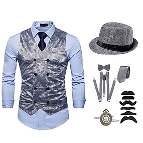 Retro Řvoucí 20s 20. léta 20. století Maškarní Kamizelka Vesta Velký Gatsby svědci ženicha Maškarní kostým Pánské Plesová maškaráda Svatební Svatební host Večírek Dospělé Vesta