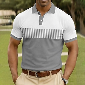 Pánské Geometrické tvary Çizgi Waffle Polo košile Krátký rukáv Polo tričko Košile s límečkem Obchodní příležitostné Venkovní Obchod Oblečení na atletiku 3D tisk Knoflíky Léto Šedá