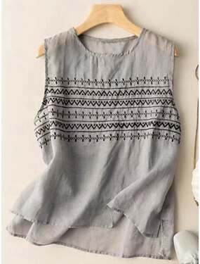 Dámské Košile Bavlněné lněné košile Halenka Imitace bavlny a lnu Tisk Geometrický Základní Na běžné nošení Bez rukávů Tričkový Běžné topy Denní Bílá Khaki Šedá Léto