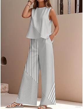 Dámské Sady kalhot Imitace bavlny a lnu Bez rukávů Tričkový Proužky Tisk Aktivní Módní Denní Dovolená Běžné / Denní Vodní modrá Fialová Trávová zelená Léto Běžný