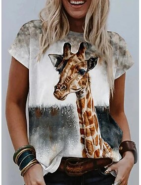 Ženské tričko s potiskem zvířete písmeno vintage stylové klasické krátký rukáv kulatý výstřih klasické topy každodenní víkendový potisk černá bílá modrá šedá léto