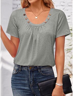 Dámské Tričko Tričko Top Knoflíky Bez vzoru Módní stylové Klasické Krátký rukáv Tričkový Běžné topy Denní Jdeme ven Víkend Vodní modrá Černá Světlá růžová Khaki Šedá Léto Jaro