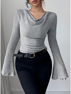 Dámské Halenka Nabírané šaty Pevná barva Elegantní stylové Základní Dlouhý rukáv Nabíraný krk Běžné topy Denní Černá Fialová Trávová zelená Khaki Šedá Jaro Podzim Zima