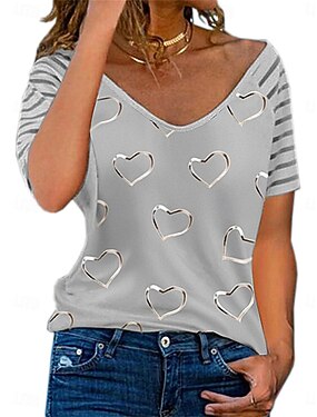 Dámské Tričko Tričko Top Tisk Srdce Módní stylové Na běžné nošení Krátký rukáv Do V Běžné topy Denní Jdeme ven Víkend Vodní modrá Černá Bílá Světlá růžová Khaki Léto Jaro