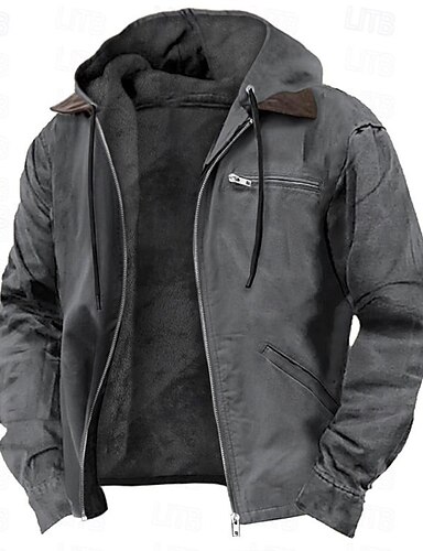 Pánské Kapuce Mikina s kapucí na zip Šerpa Linend Armádní zelená Vodní modrá Hnědá Šedá Kapuce Bez vzoru Kapsy Sporty a outdoor Denní Dovolená Polyester Vinobraní Šik ven Na běžné nošení Podzim zima