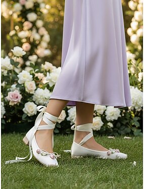 Dámské elegantní růžové saténové svatební podpatky s květinovými ozdobami – ideální pro zahradní svatby, boty pro družičky s pásky a nízké podpatky
