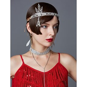 Retro Řvoucí 20s 20. léta 20. století Úbory Bubenová čelenka Sada příslušenství Velký Gatsby Svatební host Flitry Flitry Maškarní kostým Dámské předvečer Všech svatých Karneval Plesová maškaráda