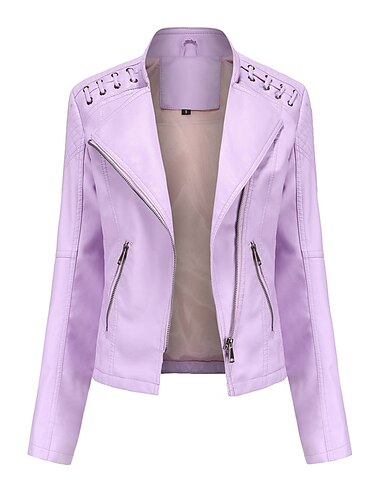 dámská bunda z umělé kůže moto motorkářská bunda podzim nepromokavý kabát odolný proti větru zimní zip klopa moderní svrchní oblečení dlouhý rukáv kauzální dovolená