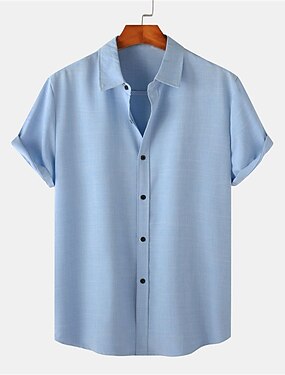 Pánské Košile Lněná košile Košile na knoflíky Pevná barva Dovolená ulice Černá Bílá Žlutá Světle zelená Krátký rukáv Košilový límec Léto Jaro Oblečení Knoflíky