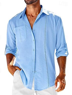 Pánské Košile Lněná košile Letní košile Košile s knoflíkem Plážová košile Pevná barva Dovolená Denní nošení Bílá Světlá růžová Trávová zelená Světle modrá Dlouhý rukáv Klopa Oblečení Knoflíky