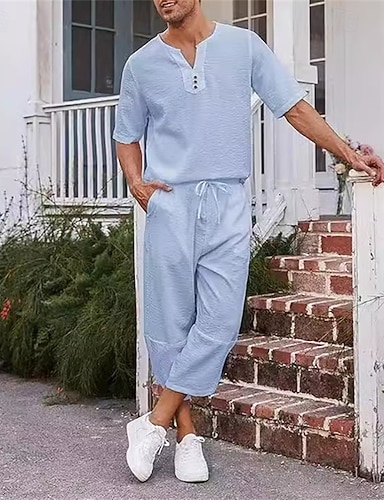 Pánské Košile 2 kusy Sada košile Letní košile Odpovídající sady Bez vzoru Dovolená ulice Černá Bílá Námořnická modř Khaki Krátký rukáv Do V Léto Oblečení