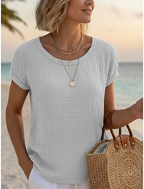 Dámské Košile Halenka Bavlněná košile Imitace bavlny a lnu Bez vzoru stylové Klasické Moderní Krátký rukáv Tričkový Běžné topy Denní Dovolená Jdeme ven Bílá Světlá růžová Nebeská modř Trávová zelen