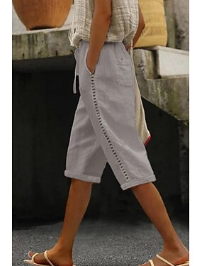 Dámské Bermudské kraťasy Capri kalhoty Imitace bavlny a lnu Letní šortky Módní Základní Na běžné nošení Délka kolen Středně vysoký pas Bez vzoru Šňůrky Boční kapsy Vydutý Pohodlné Neelastické Plážov