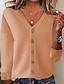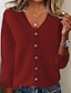 Dámské Svetr Kardigan Šik ven Na běžné nošení Pevná barva Do V Pletený 3/4 délka rukávu Běžné topy Plést Dovolená Jdeme ven Víkend Vínově rudá Černá Jaro Podzim