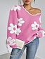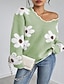 Dámské Svetr Rolák Šik ven Na běžné nošení Květinový Do V Květinový Pletený Tisk Dlouhý rukáv Běžné topy Plést Denní Dovolená Jdeme ven Světle zelená Světlá růžová Podzim Zima