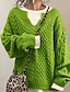 Vánoční dámský svetr pulovr módní streetwear casual grafický V-výstřih oversized pletený dlouhý rukáv běžné vršky pletené venkovní denní bílá světle zelená jaro podzim