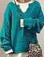 Dámské Svetr Rolák Elegantní Módní Šik ven Pevná barva Do V Pletený Dlouhý rukáv Běžné topy Plést Venkovní Domů Denní Černá Světle zelená Podzim Zima