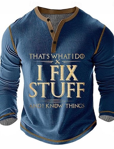 Pánské tričko s dlouhým rukávem Henley "To je co dělám opravují věci a vím věci" žebrované tričko pro zručné muže