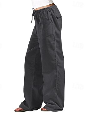 Dámské Imitace bavlny a lnu Kalhoty Letní kalhoty Šik ven Na běžné nošení Plná délka Přírodní Bez vzoru Kapsy Pružný design se stahovací šňůrkou Venkovní Pohodlné Denní nošení Jdeme ven Tlumená zele