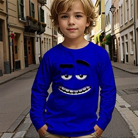 Chlapecké tričko s kresleným potiskem, vtipným úsměvem a tváří, dlouhý rukáv, 3D tisk, podzim/zima, módní, základní, děti 4-12 let, kulatý výstřih, outdoor, ležérní, denní, standardní střih
