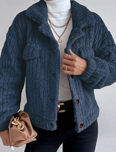 Dámské Teddy Coat Zahřívací Pohodlné Knoflíky Na běžné nošení Bez vzoru Denní nošení Jdeme ven Víkend Jednořadé Standardní Přehnutý Běžný Dlouhý rukáv Svrchní oděvy Černá Hnědá Tmavomodrá Podzim Zima