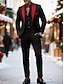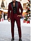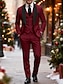 Pánské Sako + Vesta + Společenské kalhoty Vánoční sako Obleky Vánoce Obchod Koktejlový večírek Módní Na běžné nošení Jaro Podzim Polyester Bez vzoru Kapsy Knoflíky Pohodlné Jednořadé Blejzr Rubínov