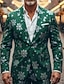 Pánské Blejzr Vánoční sako Vánoce Obchod Koktejlový večírek Módní Na běžné nošení Jaro Podzim Polyester Sněhová vločka Kapsy Knoflíky Pohodlné Jednořadé Blejzr Rubínově červená Trávová zelená