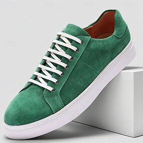 Pánské zelené semišové ležérní tenisky na šněrování s texturovaným svrškem a měkkou podrážkou, retro street styl pro každodenní nošení, víkendové procházky a výlety do města