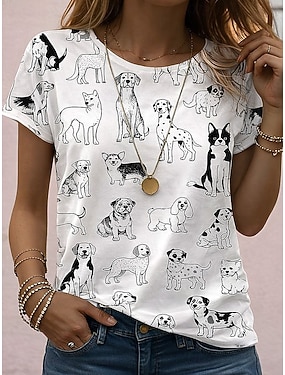 dámské tričko ležérní potisk koně krátký rukáv běžné topy posádka výstřih denní šedá léto