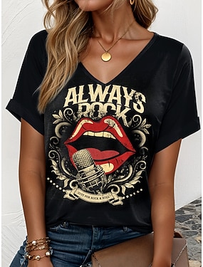 hudební festival Dámské Tričko Tisk Grafika Pusa Na běžné nošení Krátký rukáv Do V Běžné topy Denní Víkend Oblečení na dovolenou Černá Khaki Léto