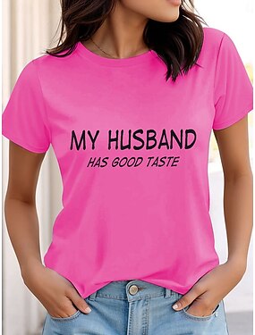 Dámské Tričko Tisk Grafika Písmeno Vinobraní stylové Klasické Krátký rukáv Tričkový Běžné topy Denní Víkend Vodní modrá Černá Bílá Světlá růžová Armádní zelená Léto Jaro Ridicule Husband