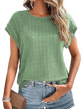 Dámské tričko jednobarevné hladké základní casual krátký rukáv kulatý výstřih běžné topy každodenní víkendové volánky průstřih bílé žluté růžové zelené letní