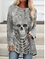 Halloween dámské tričko s grafikou lebek vintage stylové ležérní dlouhý rukáv kulatý výstřih dlouhé topy denní potisk černá šedá jaro podzim