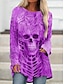 Halloween dámské tričko s potiskem lebek dýně vintage stylové klasické dlouhý rukáv kulatý výstřih běžná trička každodenní potisk černá červená světle hnědá oranžová světle šedá podzim zima