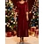 Vánoční dámské midi šaty A-line šaty prázdniny casual party svátek regular fit grafika dlouhý rukáv V-výstřih vínová jaro podzim zima