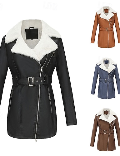 Dámské Deri Ceketler Šerpa bunda Zahřívací Pohodlné Zip Kapsy S páskem Na běžné nošení Pevná barva Dovolená ulice Ležérní Denní nošení Standardní Přehnutý Běžný Dlouhý rukáv Svrchní oděvy Černá Vodn