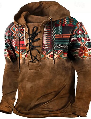 Pánské Geleneksel Kapuce Kapucky Mikina Designové Na běžné nošení Dlouhý rukáv Kapuce Sporty a outdoor Denní Sport Žlutá Rubínově červená Šněrování Tisk Jaro & podzim Návrhář