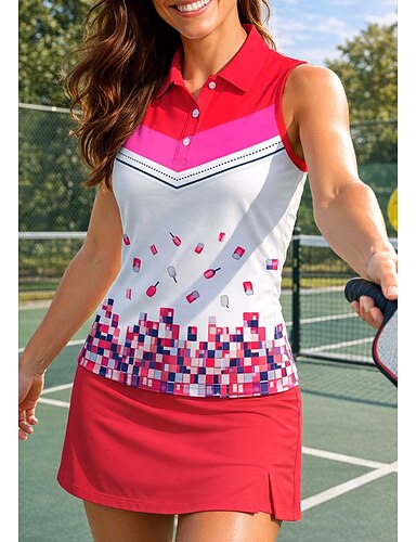 Dámské Geometrický Květiny Topy Sportovní košile Turistická polokošile Nátělník Bez rukávů Květinový Knoflíky UPF50+ Odolná proti UV záření Vysoká pružnost Odvod vlhkosti Prodyšné Volejbal Tenis Golf