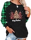 vánoční dámské mikiny s potiskem kostkované vánoční stromeček ležérní dlouhý rukáv kulatý výstřih běžné tílko ležérní sváteční potisk černá červená zelená podzim zima