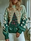 Dámské Kardigan Denní Grafika Vánoční stromek Rýhovaný Tričkový Knoflíky Tisk Dlouhý rukáv Běžné topy Plést Venkovní Dovolená Víkend Trávová zelená Béžová Podzim Zima